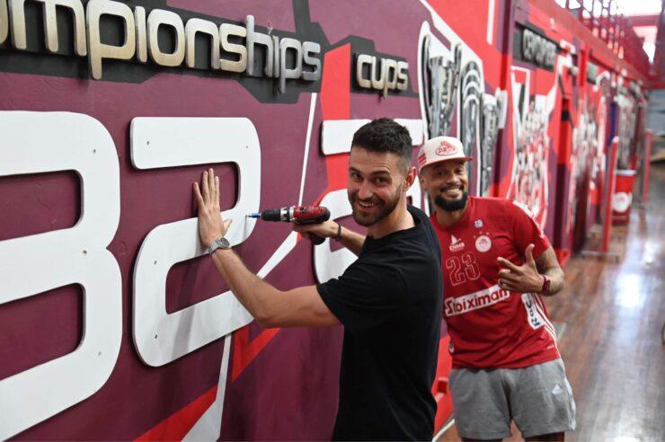 Ο Ραφαήλ Κουμεντάκης και ο Σαλβαδόρ Ιντάλγκο βρέθηκαν στο γήπεδο και έπιασαν το ηλεκτρικό κατσαβίδι για να αλλάξουν τον αριθμό σε πρωταθλήματα και κύπελλα στον τοίχο, μετατρέποντας το 31 σε 32 και το 25 σε 26 με… απολαυστικό τρόπο.