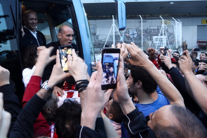Υποδοχή στο αεροδρόμιο, μία συνήθεια που γίνεται λατρεία για τους φιλάθλους του Ολυμπιακού. Αυτή τη φορά για την αποθέωση της ομαδάρας του Γιώργου Μπαρτζώκα, που μαζί με τους παίκτες και τους Προέδρους των Ερυθρολεύκων γνώρισαν την αποθέωση για το τρομερό επίτευγμα της τρίτης σερί πρόκρισης σε Final Four.