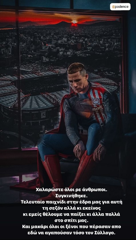 Το πρωί της Πέμπτης, ο Κώστας Καραπαπάς φρόντισε να καθησυχάσει τους οπαδούς του Ολυμπιακού για το μέλλον του Πορτογάλο εξτρέμ στο Λιμάνι: «Χαλαρώστε όλοι ρε άνθρωποι. Συγκινήθηκε. Τελευταίο παιχνίδι στην έδρα μας για αυτή τη σεζόν αλλά και εκείνος και εμείς θέλουμε να παίξει κι άλλα πολλά στο σπίτι μας. Και μακάρι όλοι οι ξένοι που πέρασαν από εδώ να αγαπούσαν τόσο τον σύλλογο», έγραψε ο αντιπρόεδρος του Ολυμπιακού σε στόρι στο Instagram.