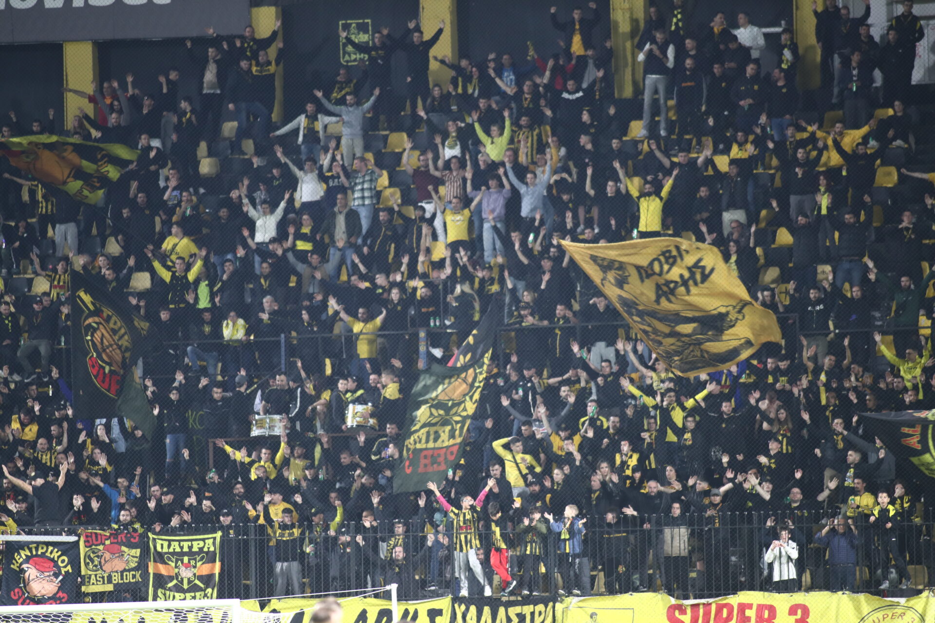 Φωνή μάγκες. Ηχητική Βία. Να σπάσουνε τα τύμπανα των αυτιών τους από τον πανζουρλισμό που θα επικρατεί από πάνω τους. Η τρέλα μας και το πάθος μεταφέρεται στους παίκτες μας, οι οποίοι με την σειρά τους, θέλουμε να δώσουνε τα πάντα, όπως πράττουν κάθε αγωνιστική. Με ένα και μοναδικό όπλο, τη ΦΩΝΗ ΜΑΣ, δίνουμε ότι έχουμε και δεν έχουμε μέχρι να μη μπορούν να αλλάξουνε κουβέντα μεταξύ τους από τον θόρυβο.
