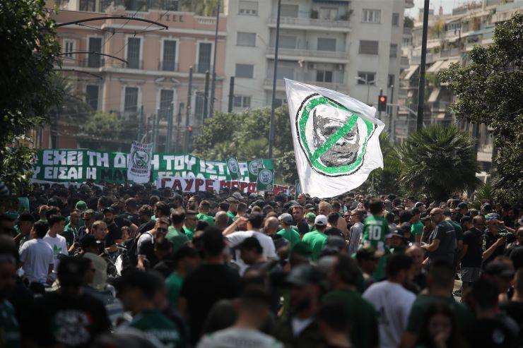 Περίπου 5.000 οπαδοί του Παναθηναϊκού – αρκετοί εκ των οποίων ήρθαν από την επαρχία – ξεκίνησαν να συγκεντρώνονται στις 15:00 στο Πεδίον του Άρεως όπου είχε οριστεί ως το αρχικό σημείο συνάντησης και ξεκίνησαν να ακούγονται τα συνθήματα τόσο κατά του ιδιοκτήτη των Πράσινων όσο και κατά της οικογένειας Βαρδινογιάννη.