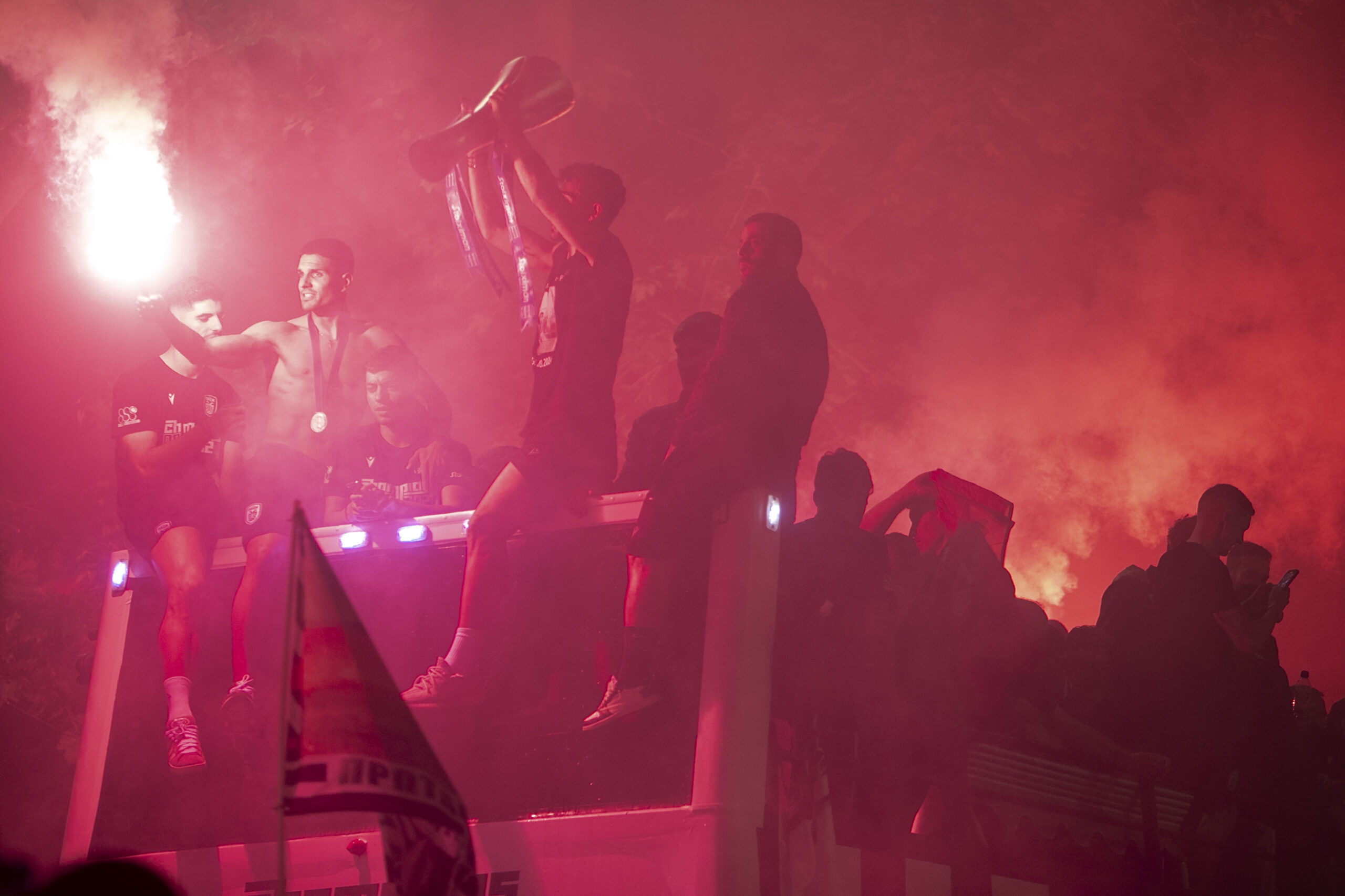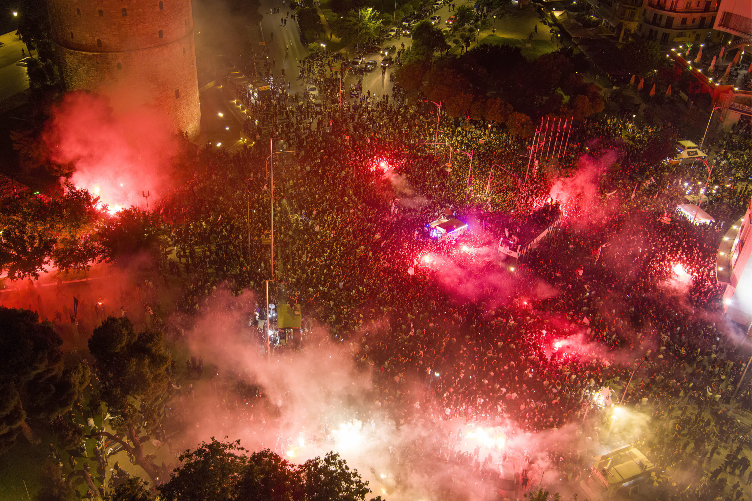 Η Θεσσαλονίκη αρνήθηκε να κοιμηθεί μετά το 4ο πρωτάθλημα του ΠΑΟΚ: Δεκάδες χιλιάδες οπαδοί του Δικεφάλου μετέφεραν το πάρτι από την Τούμπα στον Λευκό Πύργο που «κάηκε» για την αποθέωση των παικτών του Ραζβάν Λουτσέσκου