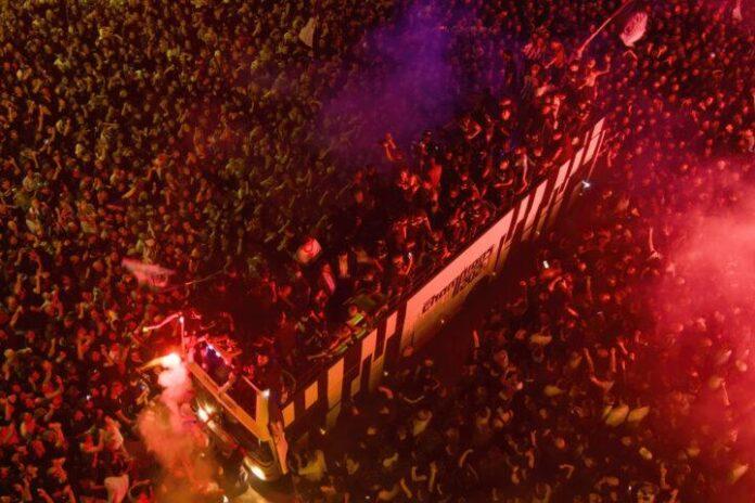 Η Θεσσαλονίκη αρνήθηκε να κοιμηθεί μετά το 4ο πρωτάθλημα του ΠΑΟΚ: Δεκάδες χιλιάδες οπαδοί του Δικεφάλου μετέφεραν το πάρτι από την Τούμπα στον Λευκό Πύργο που «κάηκε» για την αποθέωση των παικτών του Ραζβάν Λουτσέσκου