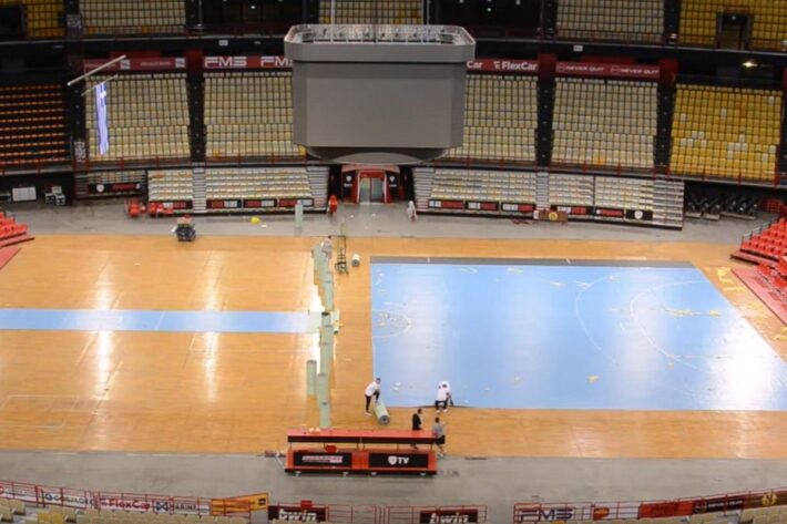 Το ΣΕΦ μεταμορφώθηκε σε γήπεδο χάντμπολ και το αποτέλεσμα είναι άκρως εντυπωσιακό ενόψει του τελικού του Σαββάτου (25/5) για τον οποίο έχουν κλείσει ήδη τη θέση τους πάνω από 5.000 φίλαθλοι της ομάδας.