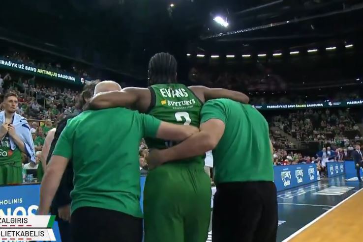 Ο Έβανς προσπάθησε να παίξει άμυνα στο τρίποντο και έπεσε κάτω σφαδάζοντας. Πρόκειται για τραυματισμό στο ίδιο πόδι με εκείνο που είχε υποστεί ρήξη αχιλλείου τη σεζόν 2022/23 και οι πρώτες εκτιμήσεις δεν είναι καθόλου ευοίωνες αφού οι Λιθουανοί κάνουν λόγο για σοβαρό τραυματισμό κοντά στο γόνατο.