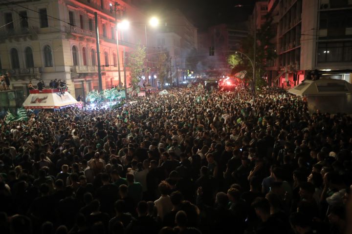 Πριν καλά καλά γίνει η απονομή του τροπαίου ο κόσμους του Παναθηναϊκού βγήκε στους δρόμους, με το επίκεντρο των πανηγυρισμών να είναι η πλατεία Ομονοίας. Κόσμος κατευθύνθηκε και προς το Σύνταγμα, ενώ αρκετός κόσμος υπήρχε στη Λεωφόρο Αλεξάνδρας.