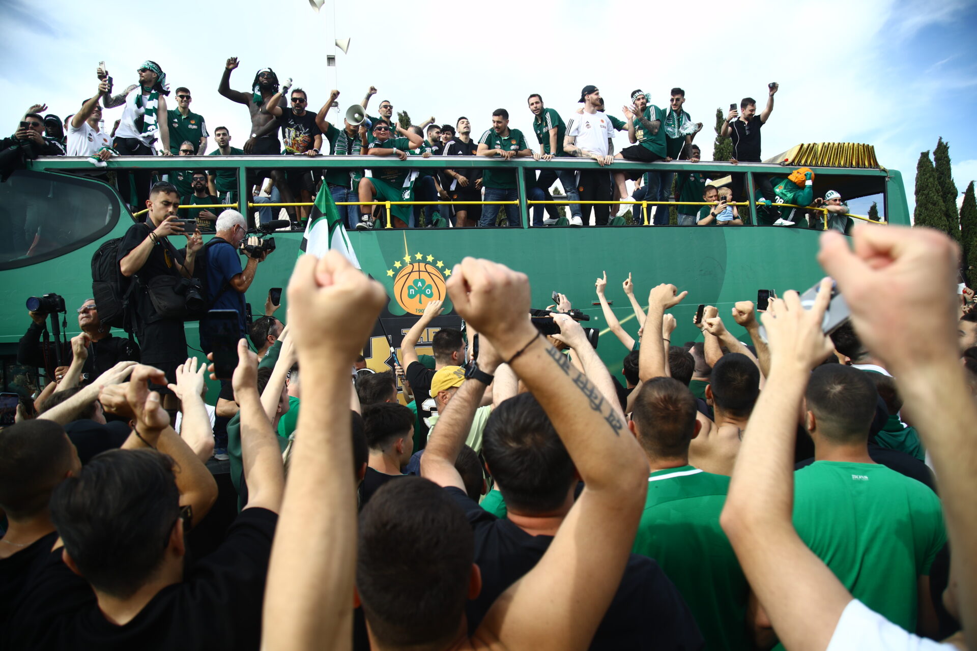 Ήδη από το πρωί της Δευτέρας η πράσινη ΚΑΕ είχε ενημερώσει πως η αποστολή της ομάδας θα μεταβεί από το αεροδρόμιο στο ΟΑΚΑ με ανοιχτό πούλμαν. Κάπως έτσι συγκεντρώθηκαν πολλοί οπαδοί του τριφυλλιού τόσο στο αεροδρόμιο όσο και στο γήπεδο της ομάδας.