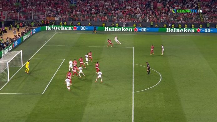 Ο βοηθός σήκωσε αμέσως το σημαιάκι του και δικαιώθηκε στη συνέχεια και μέσω VAR, με το γκολ ορθώς να ακυρώνεται.