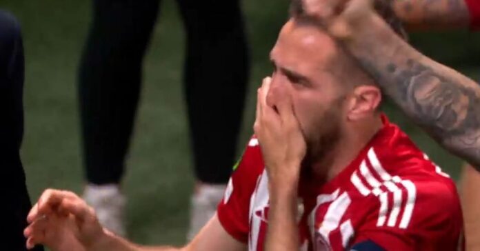 Ο αρχηγός των Ερυθρολεύκων σε μία τρομερή στιγμή έβαλε τα κλάματα μπροστά στον κόσμο του Ολυμπιακού μετά τη λήξη του τελικού που σφράγισε τον πρώτο ευρωπαϊκό τίτλο στην ιστορία του συλλόγου.