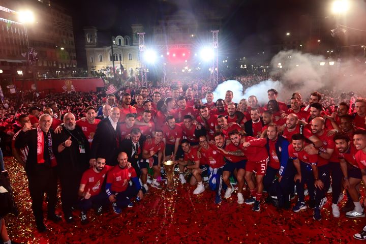 Συνθήματα, πανηγυρισμοί, τραγούδια, βεγγαλικά, χειροκρότημα, αποθέωση. Ο οργανισμός του Ολυμπιακού βίωσε ασύλληπτες στιγμές με τους πρωταγωνιστές να χαίρονται με την ψυχή τους τις στιγμές μπροστά σε περισσότερους από 100.000 εκστασιασμένους οπαδούς του συλλόγου.