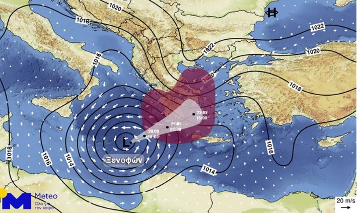 Ο κυκλώνας περίπου στις 12 το μεσημέρι του Σαββάτου, αναμένεται να βρίσκεται πάνω στα Κύθηρα. Στις 15:00 του Σαββάτου, όπως όλα δείχνουν θα είναι ανοιχτά της Λακωνίας. Αργότερα μέσα στο Σάββατο θα κατευθυνθεί προς τη Μήλο. Στις 9 το βράδυ του Σαββάτου θα είναι γύρω από τα νησιά Φολέγανδρο, Κίμωλο και Σίφνο. Στη συνέχεια, αργά το βράδυ του Σαββάτου προς ξημερώματα Κυριακής, θα βρεθεί πάνω από την Πάρο και τη Νάξο. Τέλος, πριν «διαλυθεί» θα περάσει και πάνω από την Πάτμο και τους Αρκιούς.