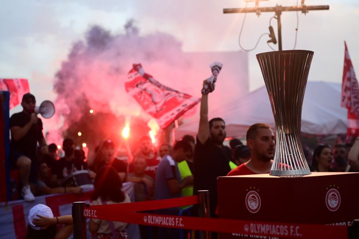 Μια ευκαιρία που φυσικά δεν άφησαν ανεκμετάλλευτη οι φίλοι των Ερυθρολεύκων, με τον κόσμο να φωτογραφίζεται με τα δύο τρόπαια και τη χαρά να μην κρύβεται. Μάλιστα δεν έλειψαν και τα συνθήματα για τις ευρωπαϊκές κούπες του Ολυμπιακού.