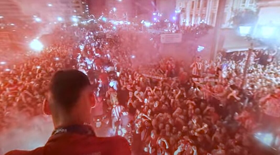 Την εντυπωσιακή διαδρομή πάνω από το λεωφορείο της ομάδας μετά την κατάκτηση του Conference League παρουσίασε με ένα φανταστικό βίντεο ο Ολυμπιακός.