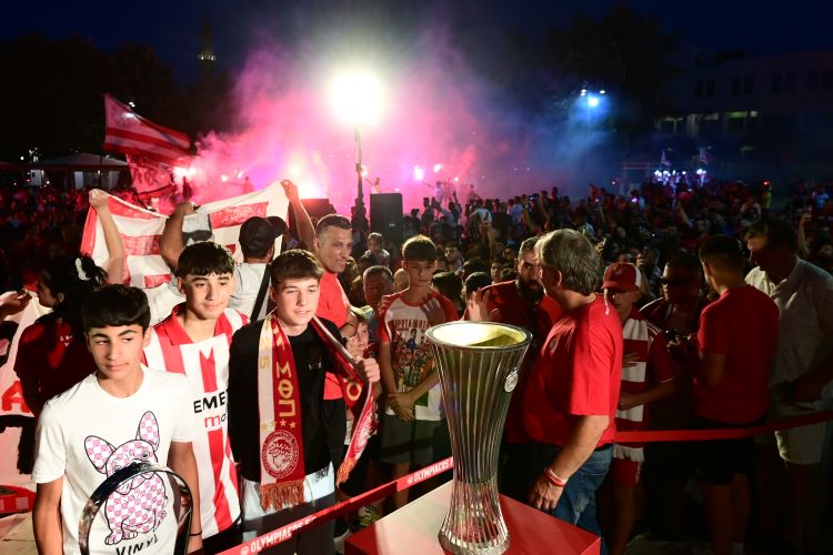 Η μέρα… νύχτα έγινε (και) στη Χίο όπου ταξίδεψαν τα δύο ευρωπαϊκά τρόπαια του Ολυμπιακού. Οι φίλοι του Ολυμπιακού υποδέχθηκαν με καπνογόνα και συνθήματα τις κούπες του Conference και του Youth League, φωτογραφήθηκαν με αυτές και πανηγύρισαν ξανά για τις φετινές επιτυχίες.