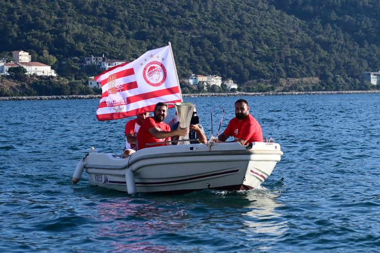 Αυτή τη φορά σειρά είχε η Σάμος, όπου σήμερα Σάββατο (22/6) πραγματοποιήθηκε ένα ερυθρόλευκο πάρτι όλη τη μέρα, με τον κόσμο του Ολυμπιακού να ζει με την ψυχή του τις στιγμές και να φωτογραφίζεται με τα τρόπαια που πήραν τη θέση τους μέσω… θαλάσσης.