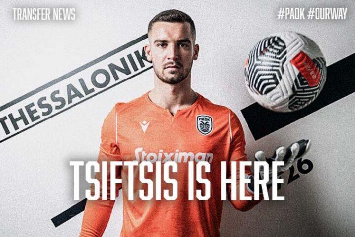 «Η ΠΑΕ ΠΑΟΚ ανακοινώνει την απόκτηση του Αντώνη Τσιφτσή με μεταγραφή από τον Αστέρα Τρίπολης. Ο Έλληνας τερματοφύλακας υπέγραψε συμβόλαιο συνεργασίας με τον Δικέφαλο μέχρι τις 30.06 του 2028 και θα φοράει τη φανέλα με τον αριθμό 99.