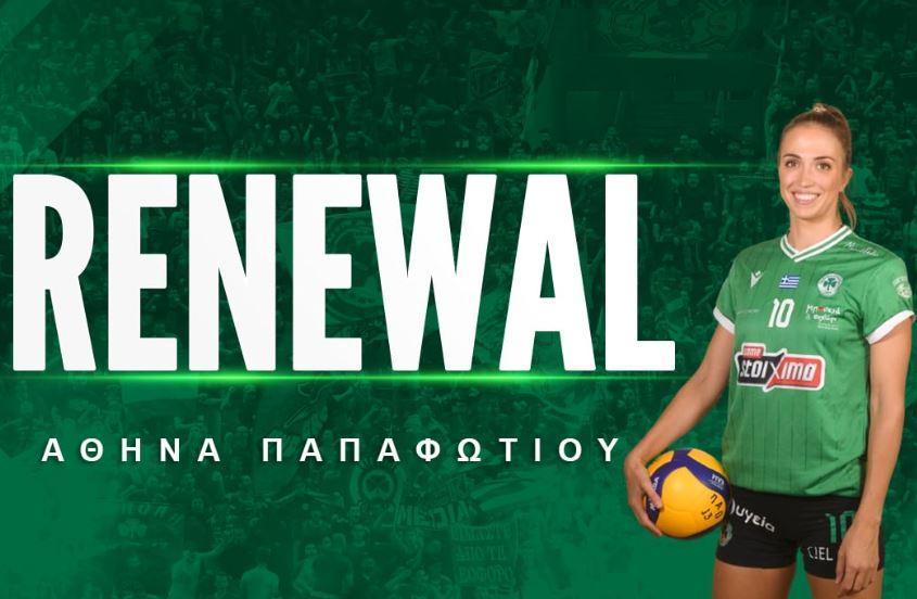 Η ανακοίνωση του Παναθηναϊκού ΑΟ αναφέρει: «Ο Παναθηναϊκός Αθλητικός Όμιλος ανακοινώνει την ανανέωση της συνεργασίας του με την Αθηνά Παπαφωτίου για το γυναικείο τμήμα βόλεϊ, για την αγωνιστική σεζόν 2024-2025.