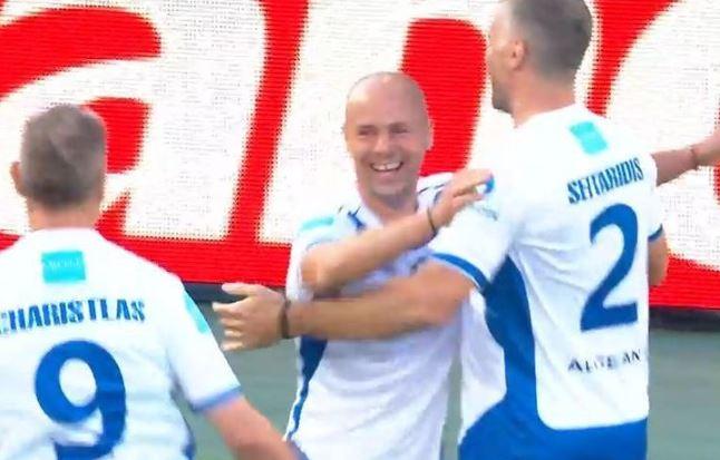 Ο Καραγκούνης με φοβερή μπαλιά βρήκε τον Γιαννακόπουλο που με υπέροχο πλασέ έστειλε την μπάλα στα δίχτυα του Τζέιμς.