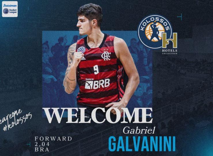 Ο Γκαμπιέλ Γκαλβανίνι συμφώνησε με τον Κολοσσό Ρόδου. Ο 26χρονος (2μ.04) Βραζιλιάνος φόργουορντ έρχεται στην Ευρώπη για πρώτη φορά και μάλιστα μετά από μερικές εξαιρετικές εμφανίσεις που έκανε με τη φανέλα της Φλαμένγκο.