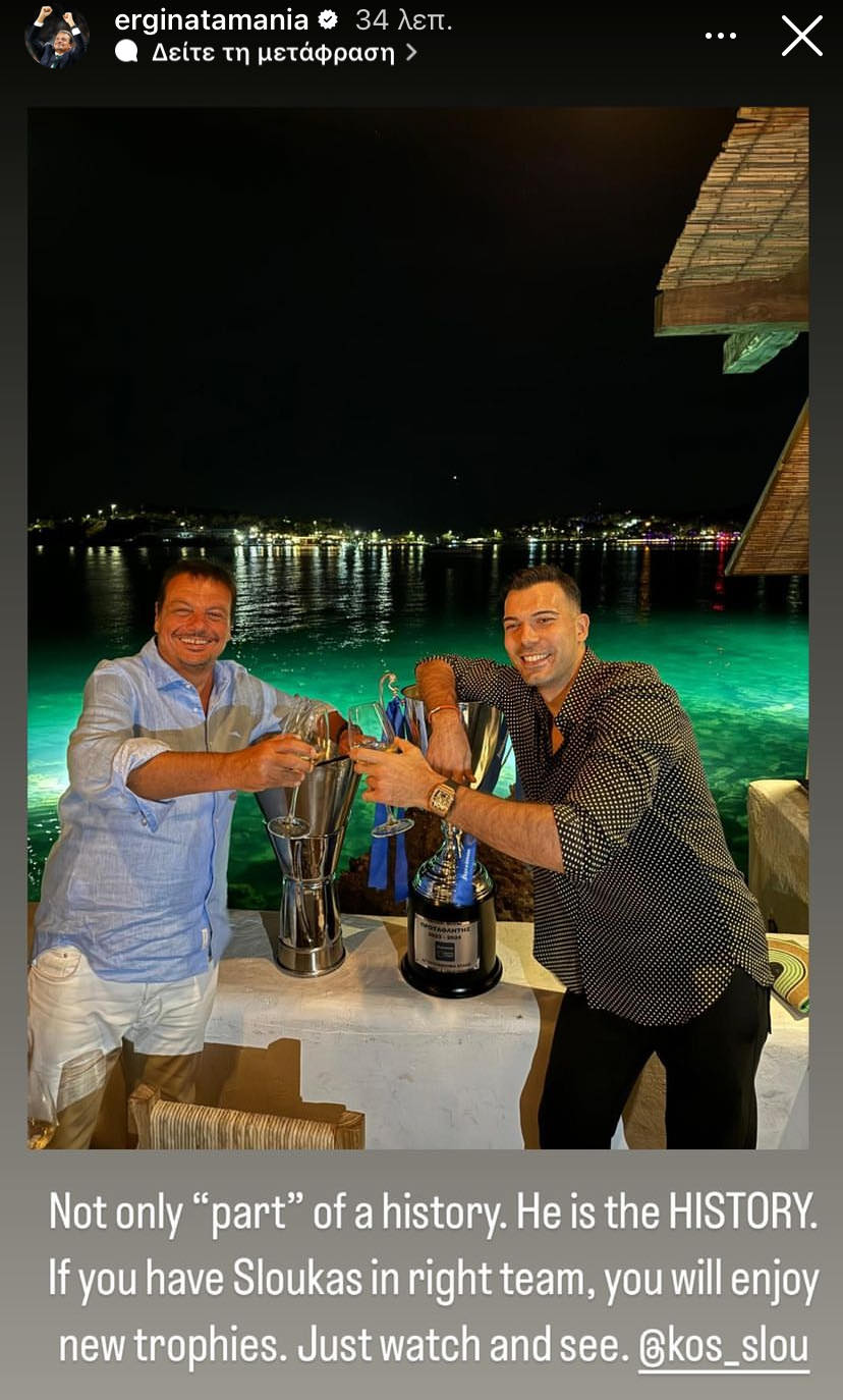«Όχι μόνο κομμάτι της ιστορία. Αυτός είναι η ΙΣΤΟΡΙΑ. Αν έχεις τον Σλούκα στη σωστή ομάδα, θα απολαύσεις νέα τρόπαια. Απλά παρακολουθήστε», έγραψε ενδεικτικά ο Τούρκος τεχνικός ποστάροντας μία φωτογραφία του με τον Έλληνα γκαρντ.