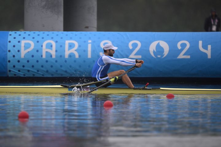 Την άνετη πρόκριση στα προημιτελικά του μονού σκιφ πανηγύρισε ο Στέφανος Ντούσκος.