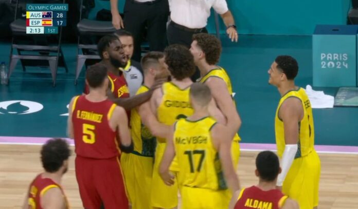 Ένταση επικράτησε στην αναμέτρηση της Αυστραλίας με την Ισπανία που ανοίγει το πρόγραμμα του μπάσκετ στους Ολυμπιακούς Αγώνες του Παρισιού.