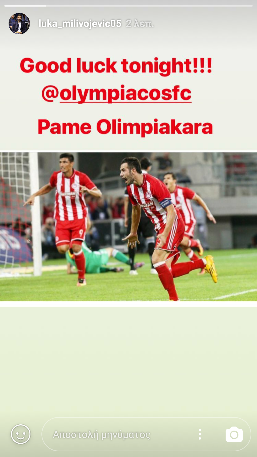 Ο Λούκα Μιλιβόγιεβιτς, πρώην αρχηγός των «ερυθρόλευκων» και νυν της Κρίσταλ Πάλας, μέσω του προσωπικού του λογαριασμού στο instagram έδωσε… σύνθημα νίκης στους Πειραιώτες!