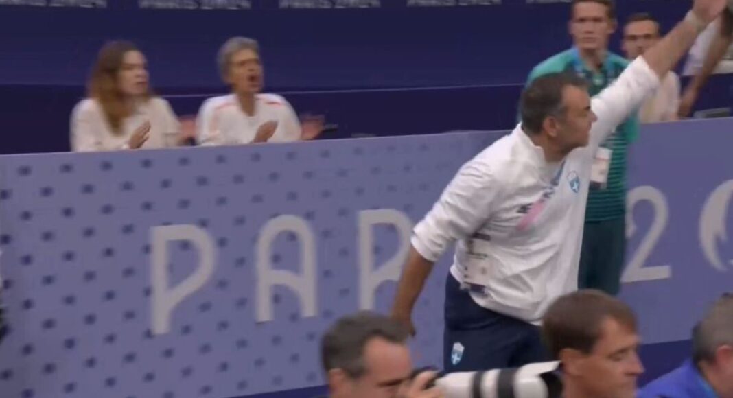 Όλα αυτά έκαναν έξαλλο τον προπονητή της, που κατά τη διάρκεια των δηλώσεων της παρενέβη στην κάμερα της ΕΡΤ και έκανε λόγω για σκάνδαλο.