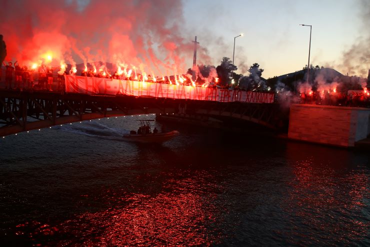 «Ένα όνειρο τρελό βγήκε αληθινό». Με πανό που είχε αυτό το μήνυμα υποδέχθηκαν οι φίλοι του Ολυμπιακού το τρόπαιο του Conference League το βράδυ της Δευτέρας (29/7) στη Χαλκίδα.