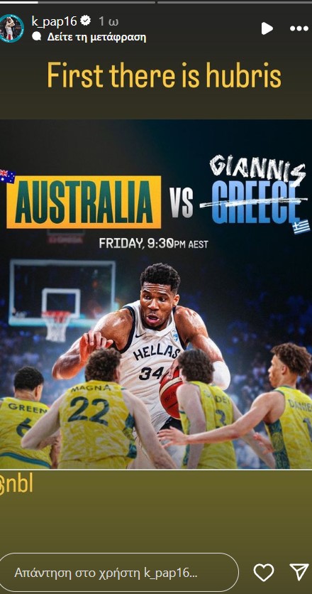 Στην απαξιωτική ανάρτηση του NBL πριν το παιχνίδι της Ελλάδας με την Αυστραλία απάντησε ο Κώστας Παπανικολάου.