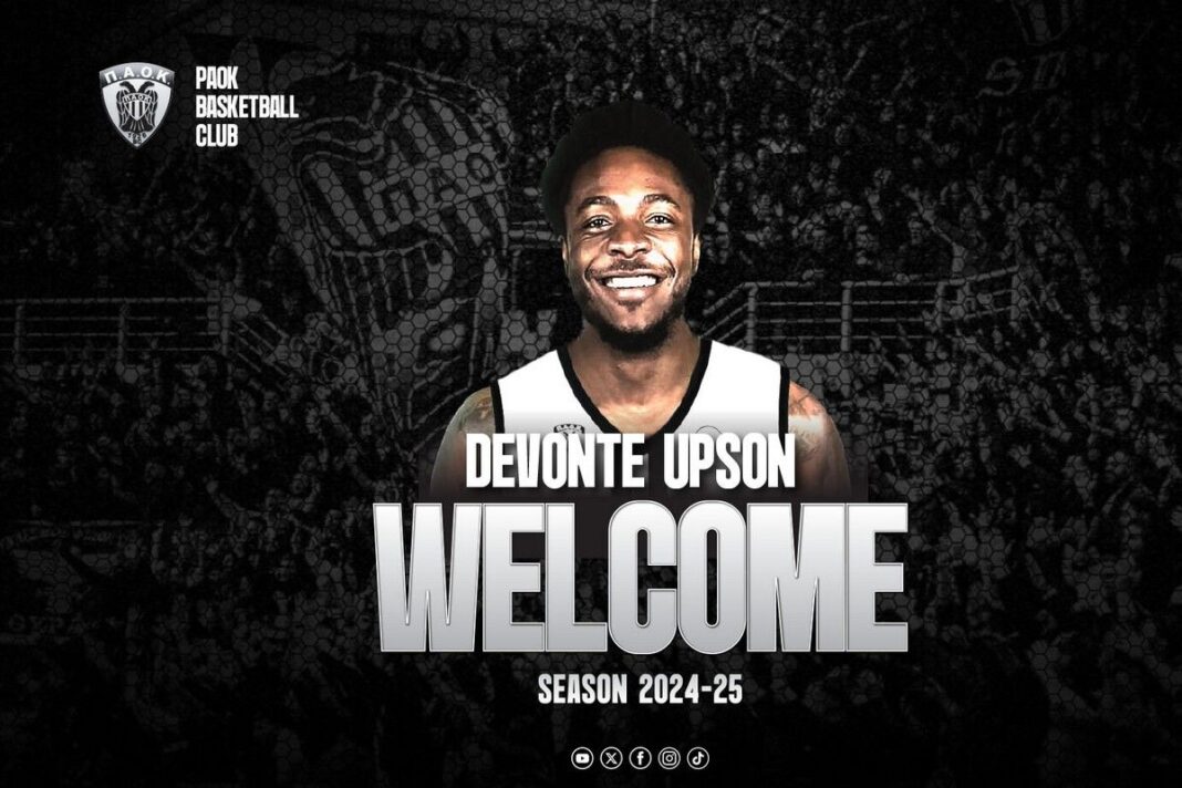 «Η ΚΑΕ ΠΑΟΚ mateco ανακοινώνει την συμφωνία με τον Αμερικανό καλαθοσφαιριστή Devonte Upson, ο οποίος θα αγωνιστεί στην ομάδα μας την σεζόν 2024-25. Καλωσορίζουμε τον Devonte στη μεγάλη οικογένεια του ΠΑΟΚ.