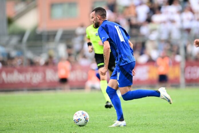 Ρόμα και Ολυμπιακός κοντράρονται σε φιλικό παιχνίδι στο Ριέτι, με την αναμέτρηση να έχει πολύ υψηλό ρυθμό από τα πρώτα λεπτά.
