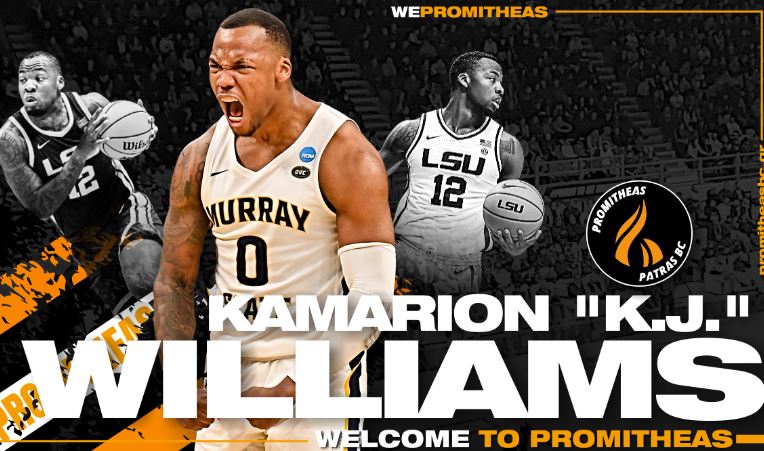 «Η ΚΑΕ Προμηθέας Πάτρας βρίσκεται στην ευχάριστη θέση να ανακοινώσει την έναρξη της συνεργασίας της με τον αθλητή, KJ Williams, ο οποίος έρχεται στην Πάτρα, για να ενισχύσει τις προσπάθειες της ομάδας μας για τη σεζόν 2024-25.