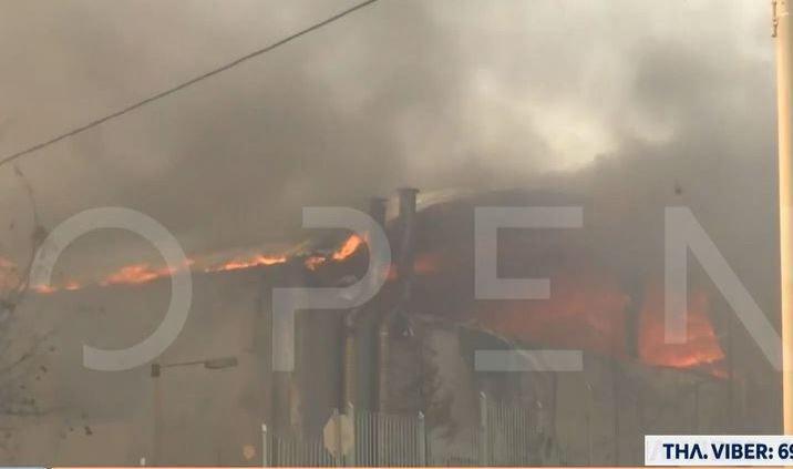 Σπίτια έχουν παραδοθεί στις φλόγες, ενώ στη Νέα Πεντέλη ολοσχερώς κάηκε το σχολείο και το ανακαινισμένο κλειστό γήπεδο της περιοχής που βρίσκεται σε σημείο με πυκνή βλάστηση.