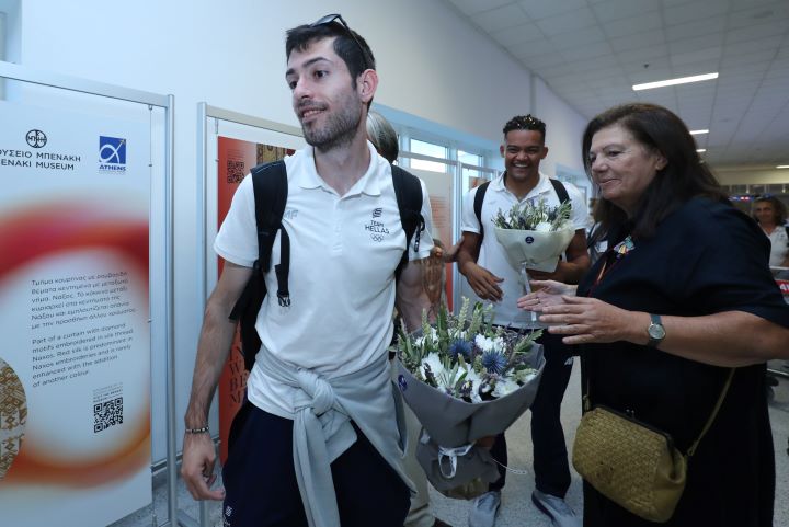 Το αεροπλάνο από το Παρίσι προσγειώθηκε στο «Ελευθέριος Βενιζέλος» το απόγευμα της Δευτέρας (12/8) με τους Έλληνες πρωταθλητές που έδωσαν το «παρών» στους Ολυμπιακούς Αγώνες να γνωρίζουν θερμή υποδοχή από συγγενείς, φίλους, εκπροσώπους της Πολιτείας, των ομοσπονδιών και απλό κόσμο.