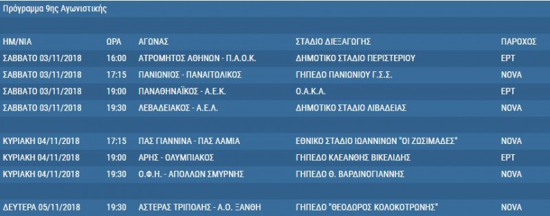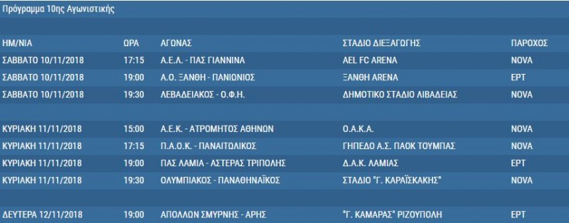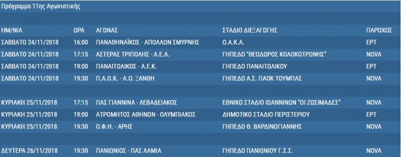 Όπως έγινε γνωστό, το ντέρμπι των «αιωνίων», ανάμεσα στον Ολυμπιακό και τον Παναθηναϊκό στο «Γ. Καραϊσκάκης» στο πλαίσιο της 10ης αγωνιστικής, αναμένεται να διεξαχθεί την Κυριακή 11 Νοεμβρίου στις 7:30 το απόγευμα.