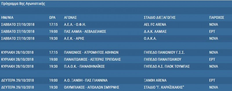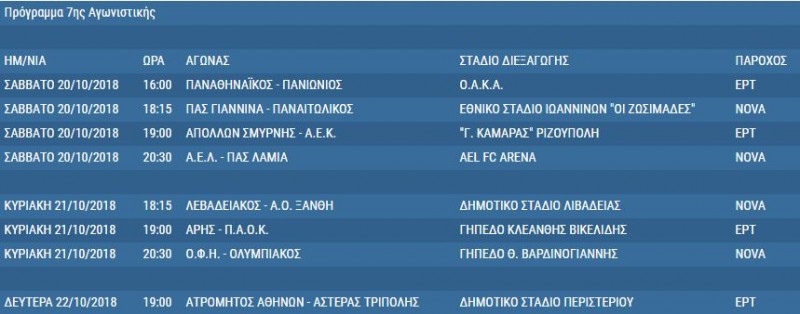 Αναλυτικά το πρόγραμμα από την 7η έως και την 11η αγωνιστική της Σούπερ Λιγκ: