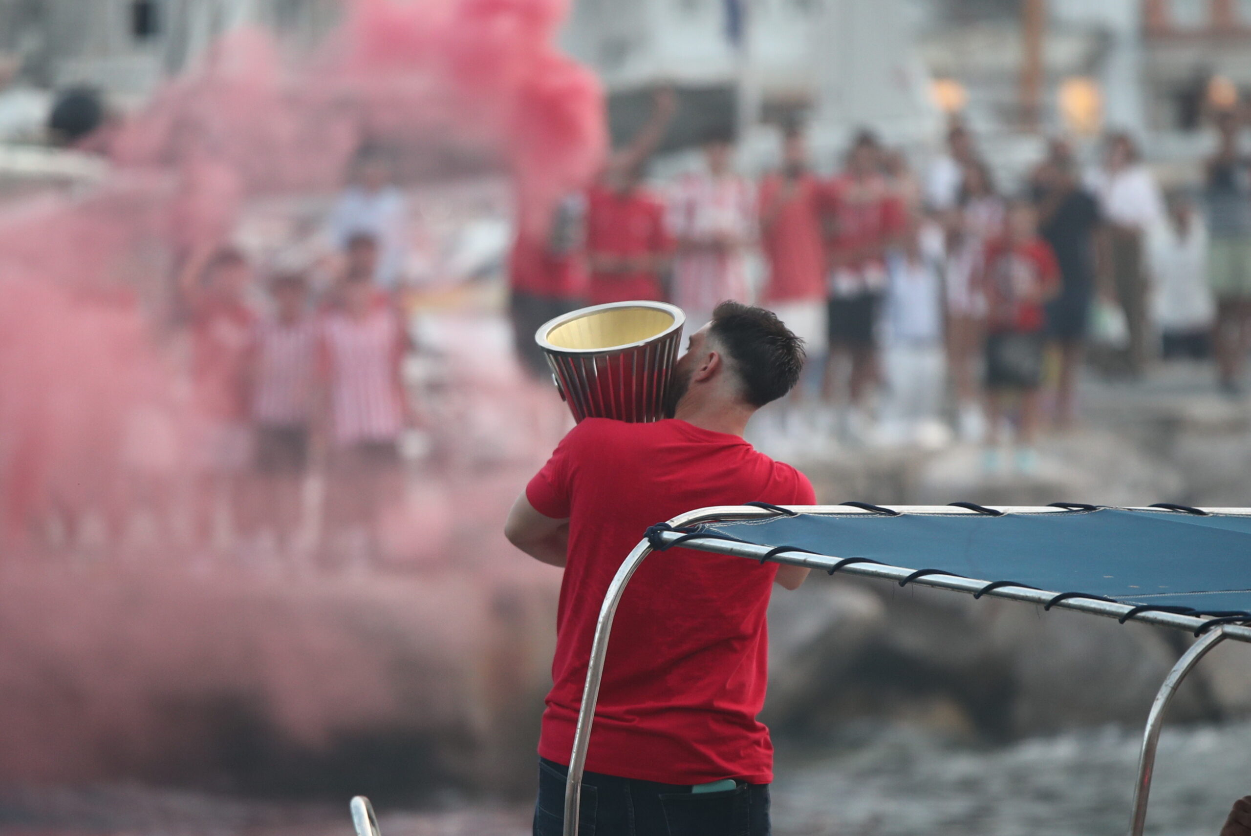 Ως τον Αργοσαρωνικό και την πανέμορφη Ύδρα έφτασε η κούπα του Conference League, με εκατοντάδες οπαδούς του Ολυμπιακού να τη μεταφέρουν με σκάφος μέχρι το λιμάνι του νησιού και από εκεί στα γραφικά του σοκάκια.