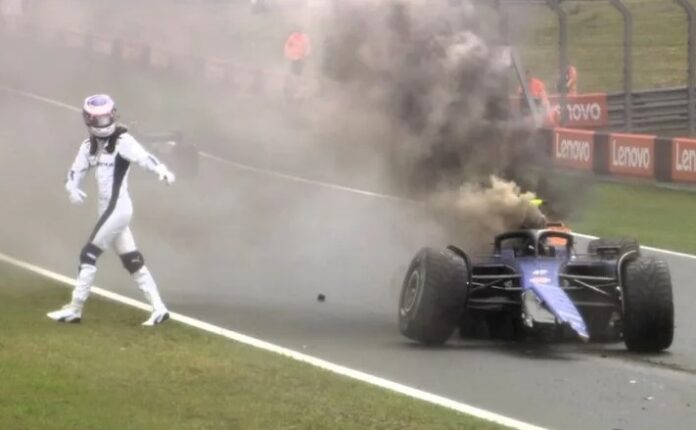 Ο πιλότος της Williams Racing έχασε τον έλεγχο, έπεσε στις μπαριέρες και μονοθέσιό του πήρε φωτιά – Βγήκε εγκαίρως ο Αμερικανός