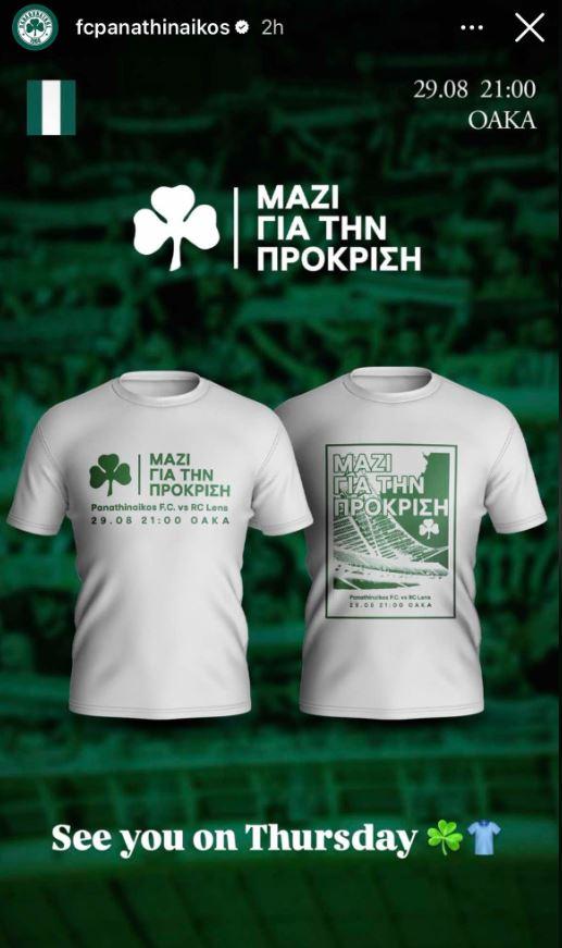 Ο Παναθηναϊκός θα μοιράσει μπλουζάκια στο ΟΑΚΑ με σύνθημα πρόκρισης για το ματς με τη Λανς