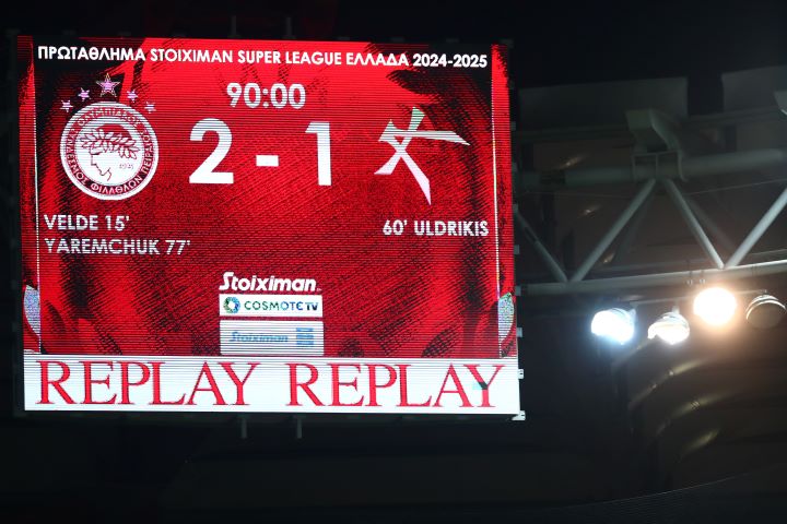Οι Κυπελλούχοι Ευρώπης είχαν σκαμπανεβάσματα στην απόδοσή τους παρότι προηγήθηκαν με το παρθενικό τέρμα του Κρίστοφερ Βέλντε. Ο Ουλντρίκις ισοφάρισε στο 60′ σε ένα διάστημα που οι νεοφώτιστοι πίεσαν, με τον Ολυμπιακό πάντως να παίρνει το τρίποντο με 2-1.
