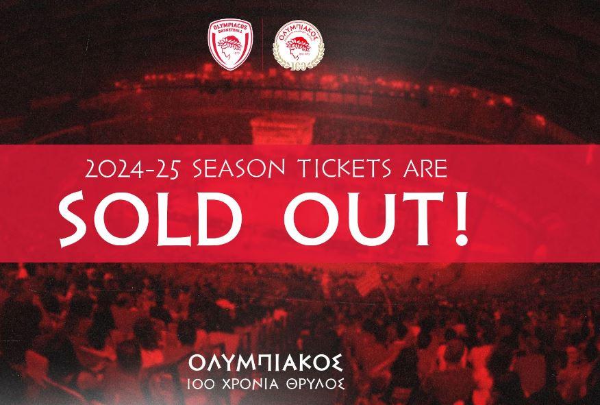 «Η ΚΑΕ Ολυμπιακός ανακοινώνει πως μέσα σε ελάχιστα λεπτά εξαντλήθηκαν τα 902 εισιτήρια διαρκείας (για τη σεζόν 2024-25) που βγήκαν σήμερα (29/08) προς διάθεση σε νέους κατόχους.