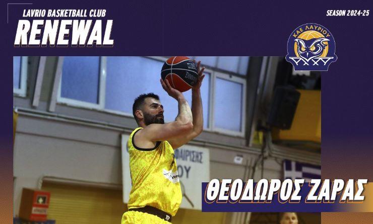 Για τρίτη σερί σεζόν παραμένει στο Λαύριο ο Θοδωρής Ζάρας. Ο 37χρονος (1,97μ.) σούτινγκ γκαρντ ανανέωσε το συμβόλαιό του μετά από μια χρονιά που συνέβαλε στην επίτευξη του στόχου της παραμονής με 5,2 πόντους κατά μέσο όρο στο περυσινό πρωτάθλημα.