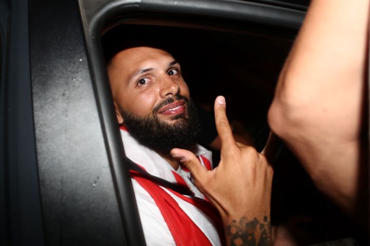 Ο Γάλλος παρακολουθούσε εκστασιασμένο τον κόσμο του Ολυμπιακού να δημιουργεί μια ανεπανάληπτη ατμόσφαιρα, τους ευχαρίστησε και έδωσε και εκείνος τον… ρυθμό στο πάρτι. Αξίζει να σημειωθεί πως ήταν τόσο μεγάλη η χαρά του που παρότι μπήκε στο αυτοκίνητο που τον περίμενε, βγήκε μετά από λίγο για να φωνάξει ξανά με τον κόσμο!