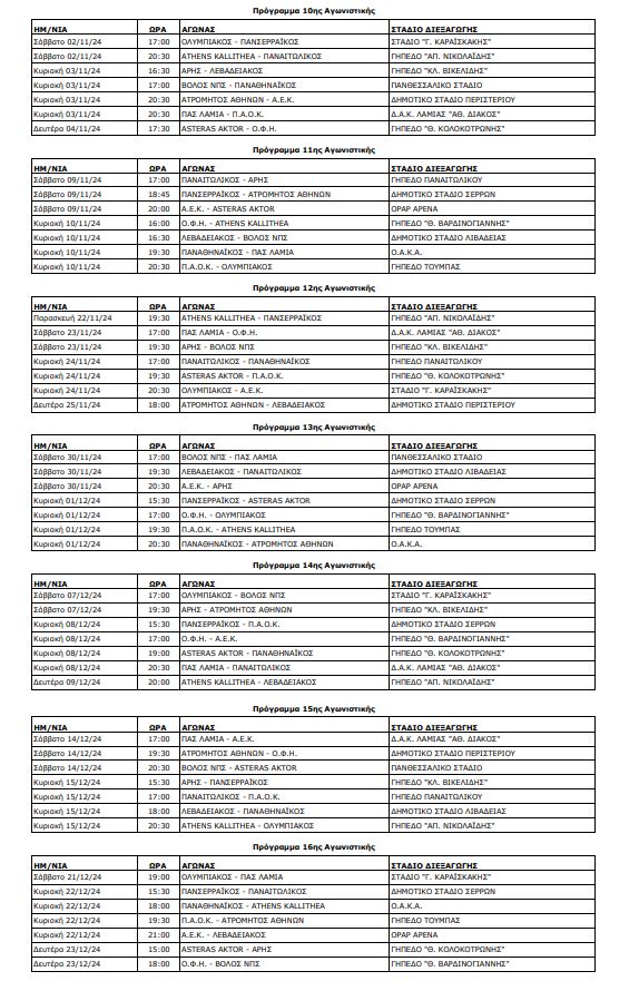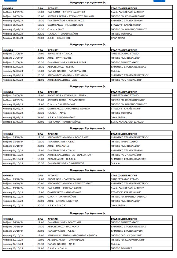 Το Διοικητικό Συμβούλιο της Super League συνεδρίασε την Πέμπτη (5/9) και όρισε τους αγώνες των επόμενων αγωνιστικών ως και το φινάλε του 2024 (από 4η ως 16η αγωνιστική), με τις ημερομηνίες των ντέρμπι να γίνονται γνωστές.
