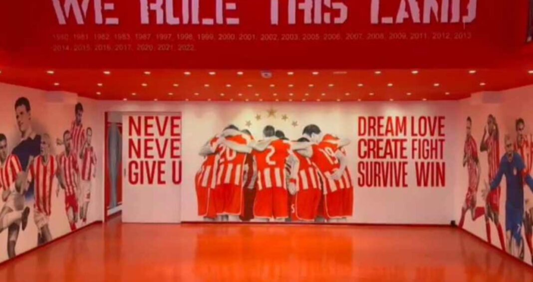 Πάνω σε αυτή τη λογική είναι βασισμένες οι νέες εντυπωσιακές τοιχογραφίες στα αποδυτήρια του «Γ. Καραϊσκάκης», με το βίντεο που δημοσίευσαν οι Ερυθρόλευκοι να είναι φανταστικό.