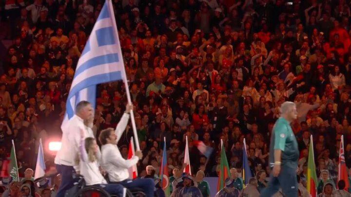 Η αποστολή της Ελλάδας εισήλθε πρώτη στο «Σταντ Ντε Φρανς» και οι Παραολυμπιονίκες μας έζησαν την απόλυτη εμπειρία και τιμή υψώνοντας την ελληνική σημαία.