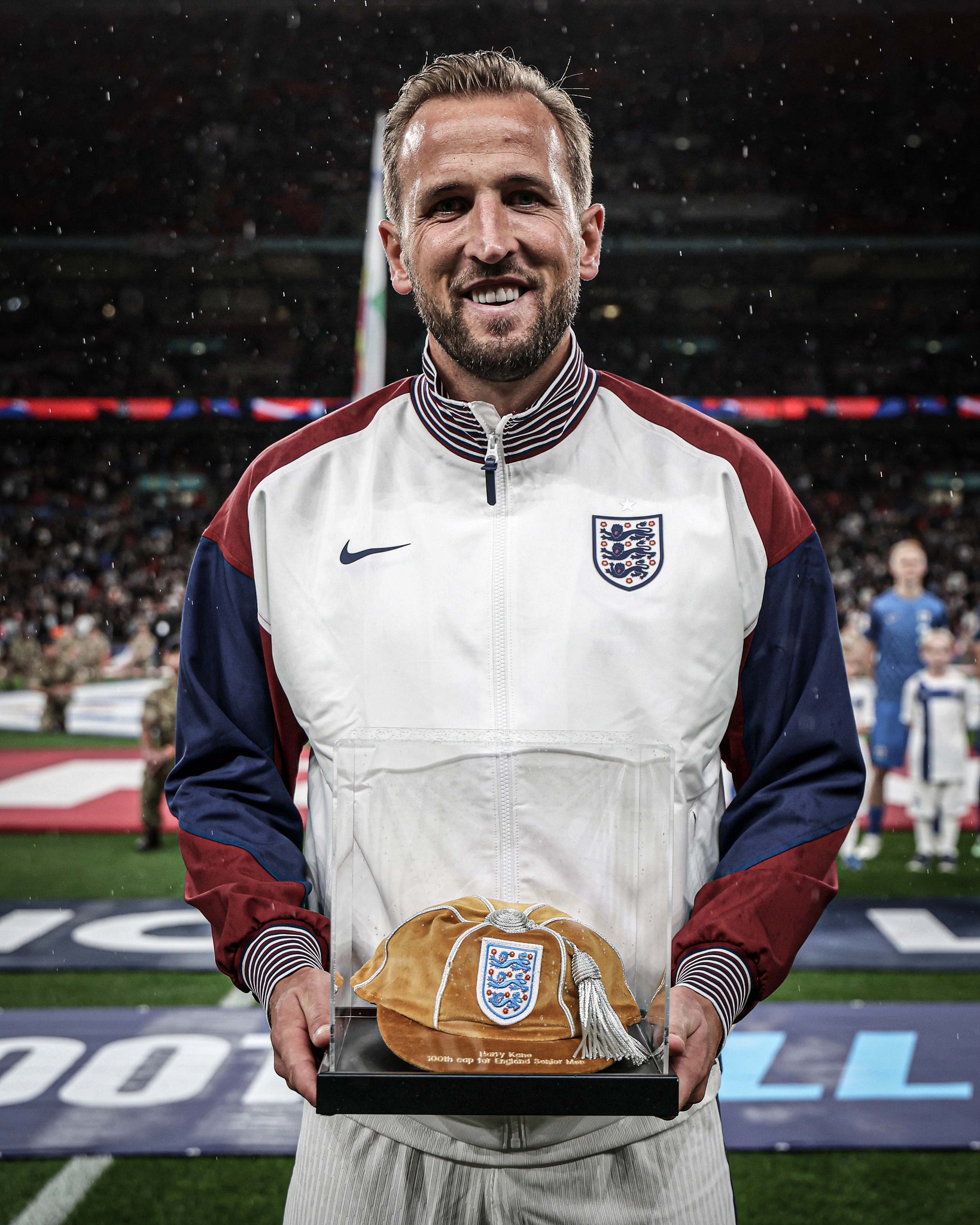 Ο αστέρας της Εθνικής Αγγλίας, Χάρι Κέιν, παρέλαβε τιμητικά ένα χρυσό καπέλο για την αποψινή 100ή του συμμετοχή του, πριν την αναμέτρηση των «Τριών Λιονταριών» με τη Φινλανδία στο Γουέμπλεϊ, εκεί όπου άρχισε τη διεθνή του καριέρα πριν από εννιάμισι χρόνια.