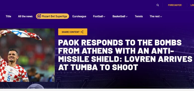 Στη μεταγραφή του Ντέγιαν Λόβρεν στον ΠΑΟΚ αναφέρθηκε με έναν ενθουσιώδη τίτλο η σερβική ιστοσελίδα Mozzartsport.