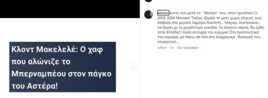 Επίθεση κατά του Κλοντ Μακελελέ εξαπέλυσε με σχόλιο του στα social media ο Άκης Ζήκος.